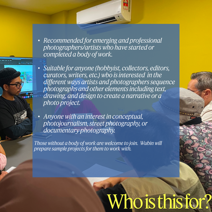 "Wubin’s photo sequence and editing workshop was awesome, showing me fresh ways to curate my shots and tell better stories. His approach helped me understand how to create a cohesive flow with image sequences." ~Yuji Haikal