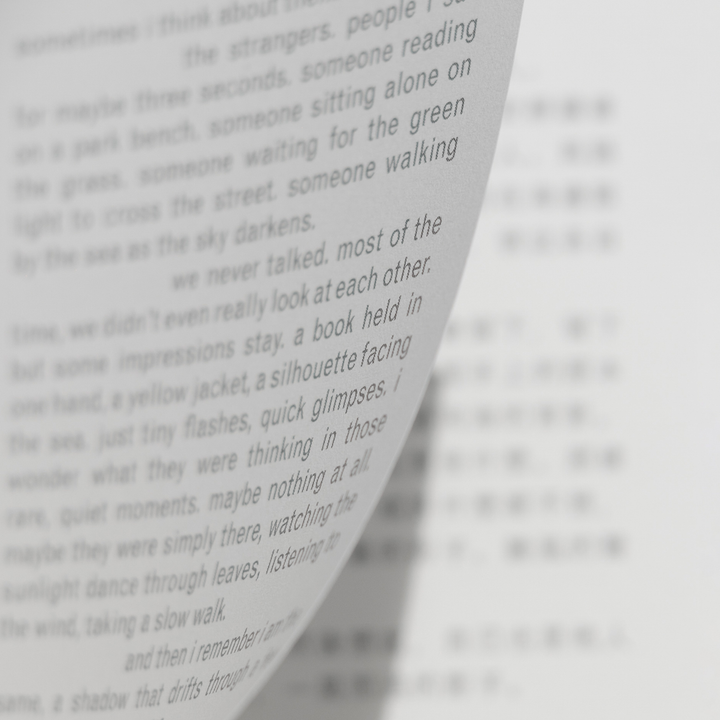 有時我會想起他們,那些經過的人。某個公園椅子上安靜讀書的人。獨自坐在草地上吹風的人。馬路對面等待綠燈亮起的人。天黑前在海邊散步的人。大概三秒左右的時間,彼此各自經過後消失。但有些印象會留下,留下後成了沒有聲音的畫面。